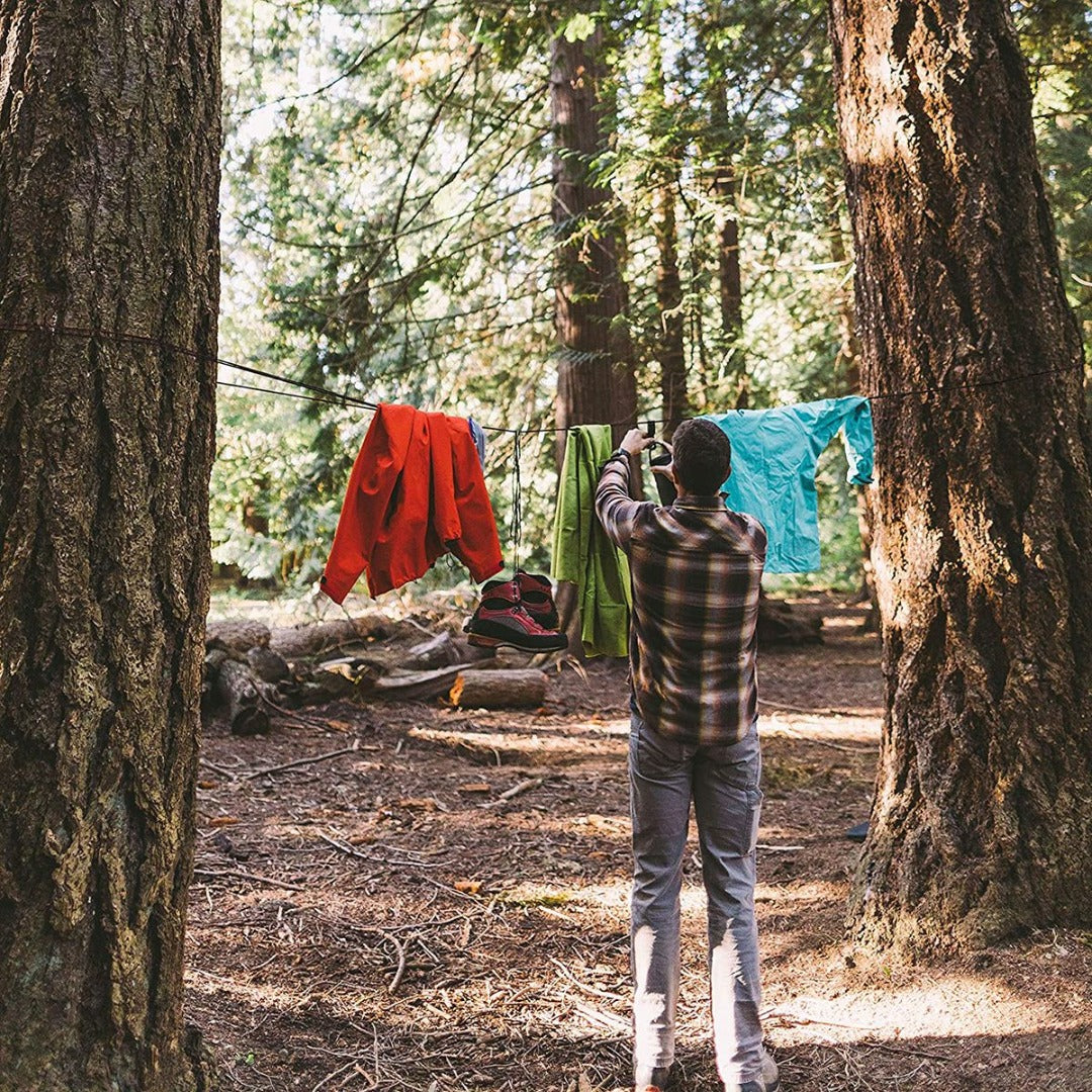 Set up a tight camp line virtually anywhere with the Gear Aid Travel Clothesline Taut Line Kit.