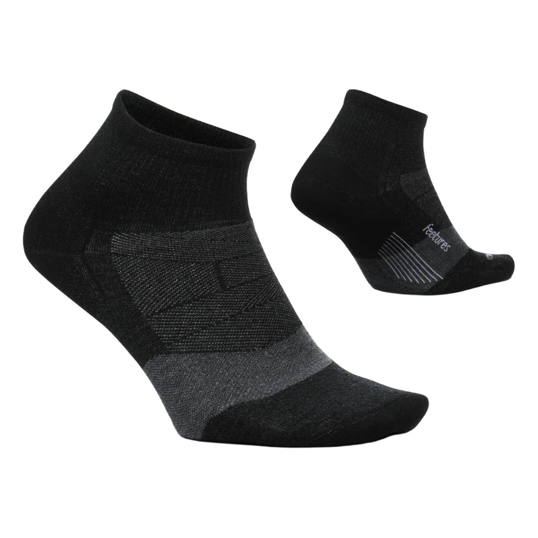With our Feetures Merino 10 Ultra Light Cushion Quarter Socks, you'll discover the perfect balance of comfort and durability. Designed with a unique blend of Merino wool and Tencel Fibers, these socks provide a superior fit and feel thanks to their Targeted Compression and Anatomical Design. Keep your feet comfortable and supported all day long with the added benefit of a reinforced heel and toe. Plus, the seamless heel and no-slip cuff make for a seamless and secure fit. Made in the USA, these socks offer unmatched quality and performance.