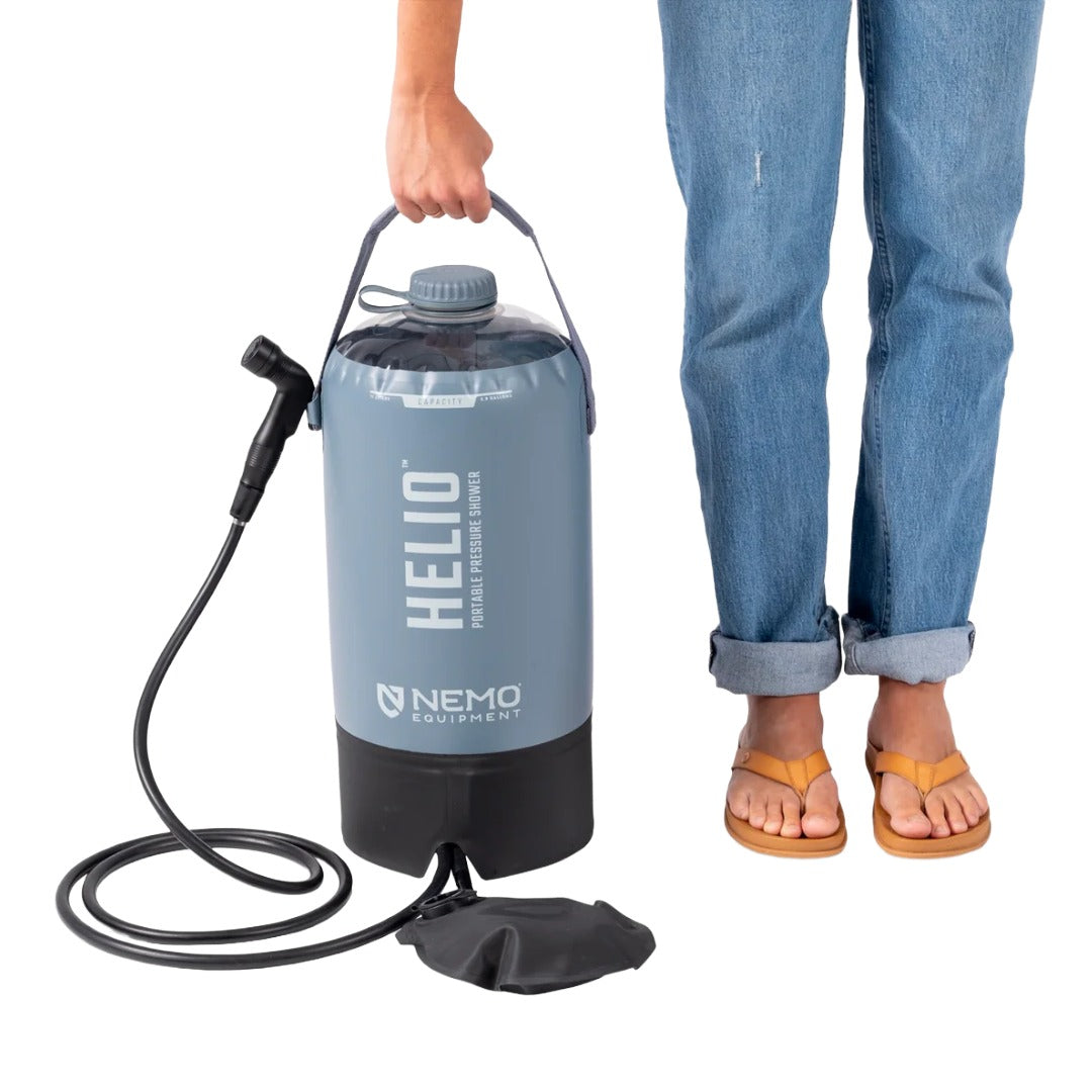 Featuring a modern look and fine-tuned features, Helio™ is a truly indispensable part of the camp kit — and everyday adventures! Armed with a pressurizing foot pump, this portable shower provides 5–7 minutes of continuous, steady spraying power without the need to hang or rely on gravity. Keep one in the car to easily rinse muddy hiking shoes, sandy wet suits, sticky hands, and more.
