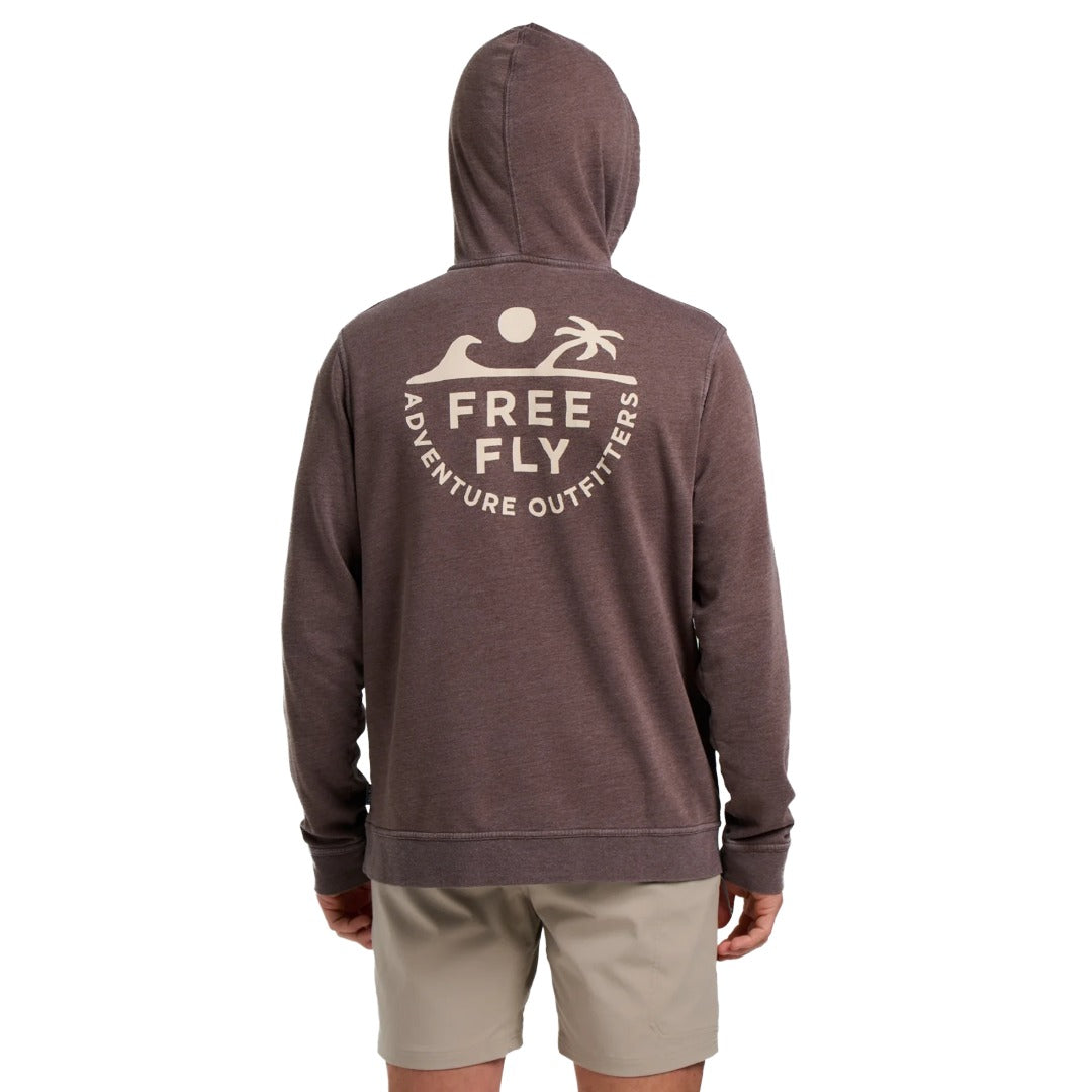 We took the same fit and feel of your old well-loved hoodie and outfitted it with our signature Free Fly details. The large back graphic pays homage to days spent in the sun, surf, and sand, with a smaller version of the same logo at the front left chest. We built the whole thing out of an ultra-soft fleece that’s washed for maximum comfort and finished it off with a kangaroo pocket (to keep your digits toasty) and ribbing at the cuffs and hem (to lock in warmth).