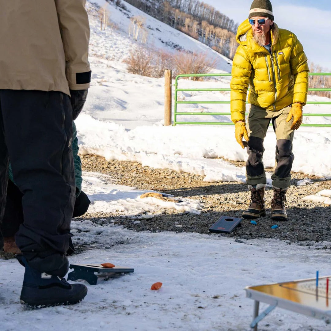 Take this mini Cornhole game anywhere and challenge your friends. Perfect for any outdoor space, this set conveniently packs down to a small, lightweight pack-sleeve making it a great option for backcountry trips as well.