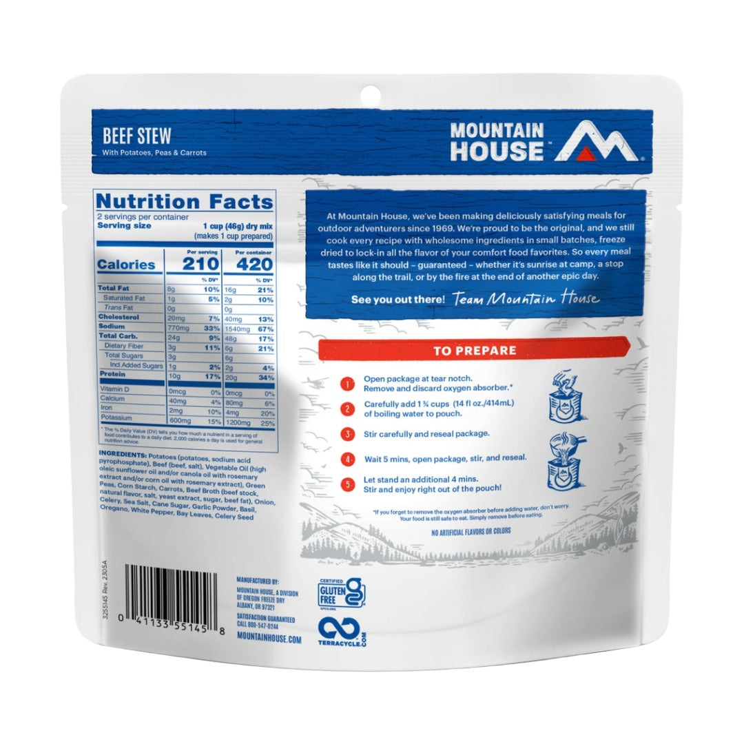 A blend of tender diced beef, carrots, peas, and potatoes are sure to give you that warm, fuzzy feeling of satisfaction. Ideal for warming up in the backcountry.