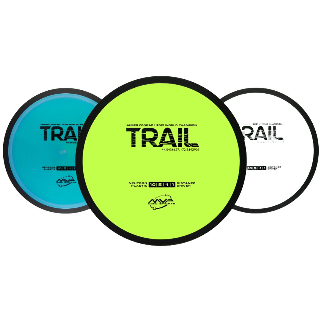 The first official 10-speed driver in the MVP lineup, the Trail is a stable-understable distance driver that, as you might expect of a Conrad disc, excels in hyzer-flip drives and turnovers. Releasing with flight numbers of 10 | 5 | -1 | 1, throwers of all power levels will find the Trail to be an exceptionally responsive driver for a variety of shot shapes, making the Trail a phenomenal disc for all skill levels.